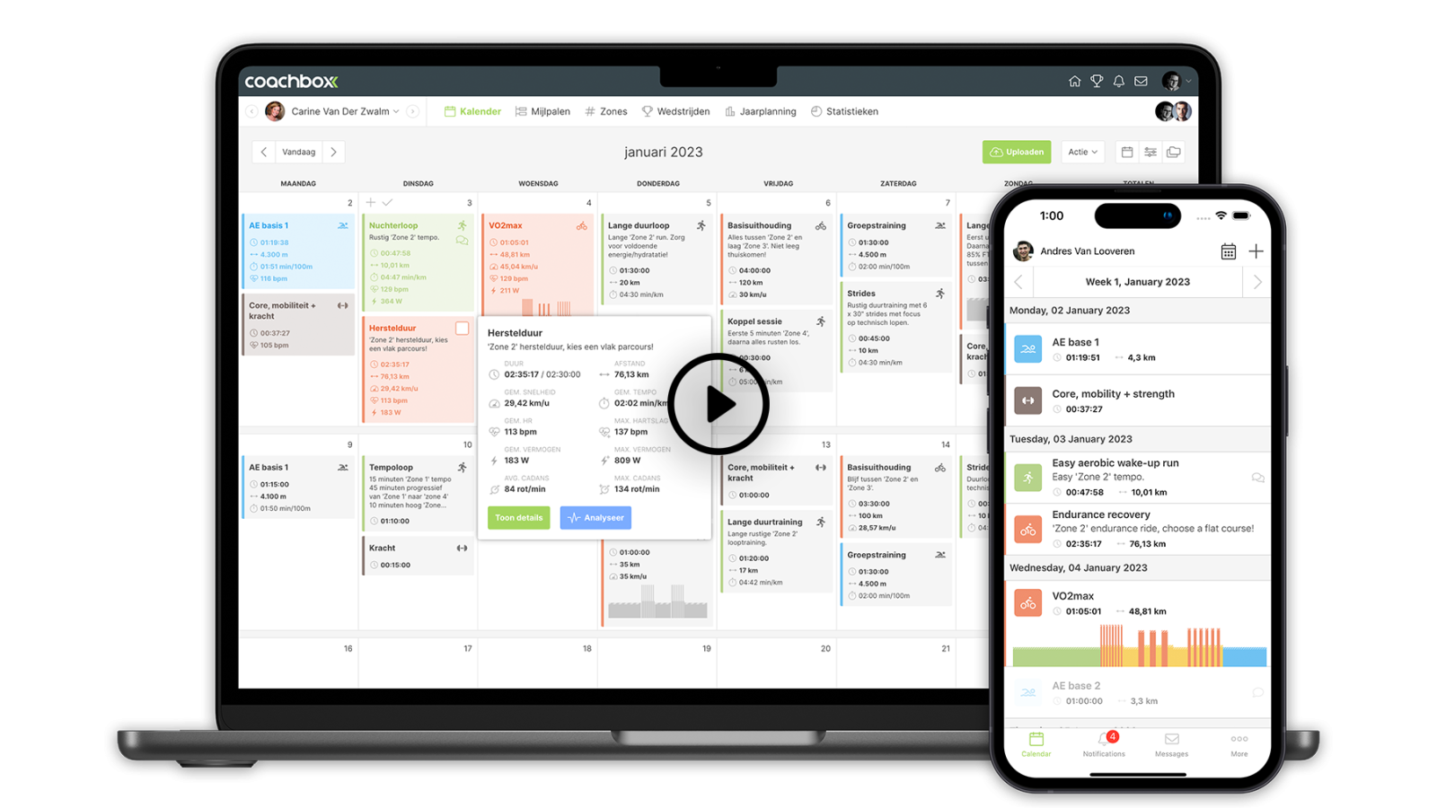 De trainingspuzzel wordt op maat uitgewerkt; alle trainingen worden in het schema geïntegreerd, gestructureerd en ingepland. Na een eerste kennismaking leer ik je als atleet wat beter kennen en gaan we vervolgens samen op zoek naar een optimale tijdsbesteding in jouw trainingsuren. Rekening houdend met hoe je lichaam reageert op een trainingsprikkel stemmen wij de begeleiding steeds verder en nauwkeuriger op jouw lichaam af.